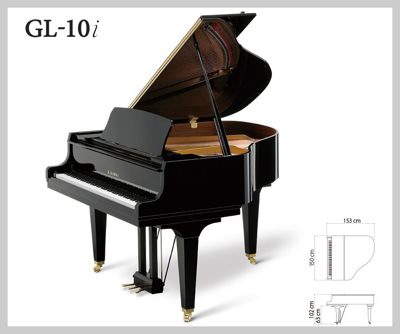 155cm 베이비 그랜드: 그랜드피아노 치고 짧아서 귀여운 피아노이다. 집에 방음방을 설치하지 않고 놓을 수 있는 마지노선 사이즈이다. 베이비 그랜드 사이즈는 보급형 그랜드피아노 모델이 많다. 가와이 GL-10 이 대표적인 모델로 신품 1350만원 정도에 구매할 수 있다. (1300만원은 30년도 더된 야마하 C3을 중고로 구매할 수 있다.) 보급형인 만큼 각 브랜드에서 피아노 만들 때 적용하는 고유의 기술들이 몇 가지 빠져있는 경우도 많다.